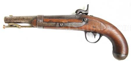 The US Model 1836 single-shot martial pistol converted from flintlock to percussion was manufactured by Robert Johnson of Middletown, Connecticut. The Model 1836 was the last flintlock pistol contracted by the US government which is a distinguishing characteristic. It was standard issue and saw use in the Seminole Wars, the Mexican War, and were converted to percussion for the Civil War.
